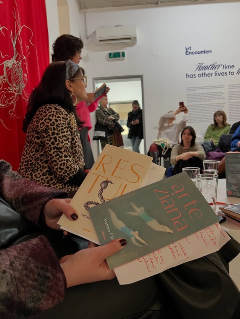 Autoarea ne-a citit din noul volum, dar și din Restul, conturând tranziția firească dintre cele două și justificând nevoia continuării. Dialogul cu publicul a depășit granițele strict literare, atingând și dimensiunea biografică. Svetlana a vorbit despre experiența scrierii volumului comun Trado, realizat împreună cu poeta poloneză Athena Farrokhzad. Un proiect născut dintr-o prietenie. O prietenie despre a lucra împreună, una dintre cele mai importante forme de conexiune pentru autoare.